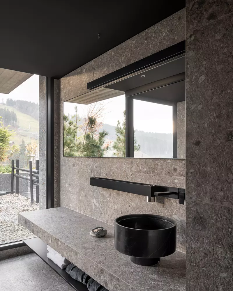 Es el Hay Boutique Hotel and Spa en Bukovel, la estación de esquí más grande de Ucrania un lugar para desconectar del mundo y reconectar con la naturaleza y con uno mismo. Para enriquecer el proyecto, se eligió para los interiores del spa la colección cerámica Mirage Norr, una superficie efecto piedra con vetas armoniosamente irregulares, a modo de guijarros de diferentes colores y tamaños, y efectos cromáticos tridimensionales.